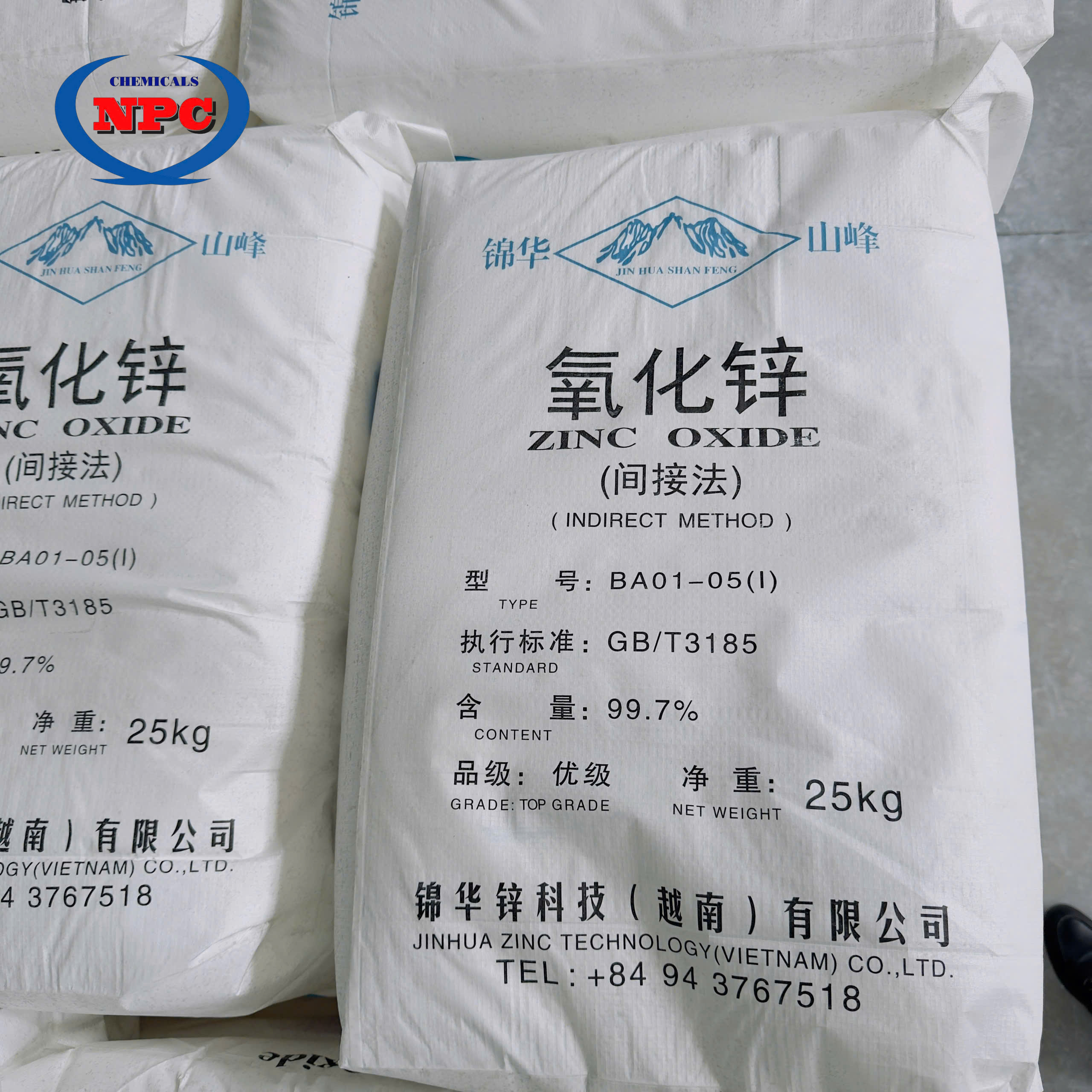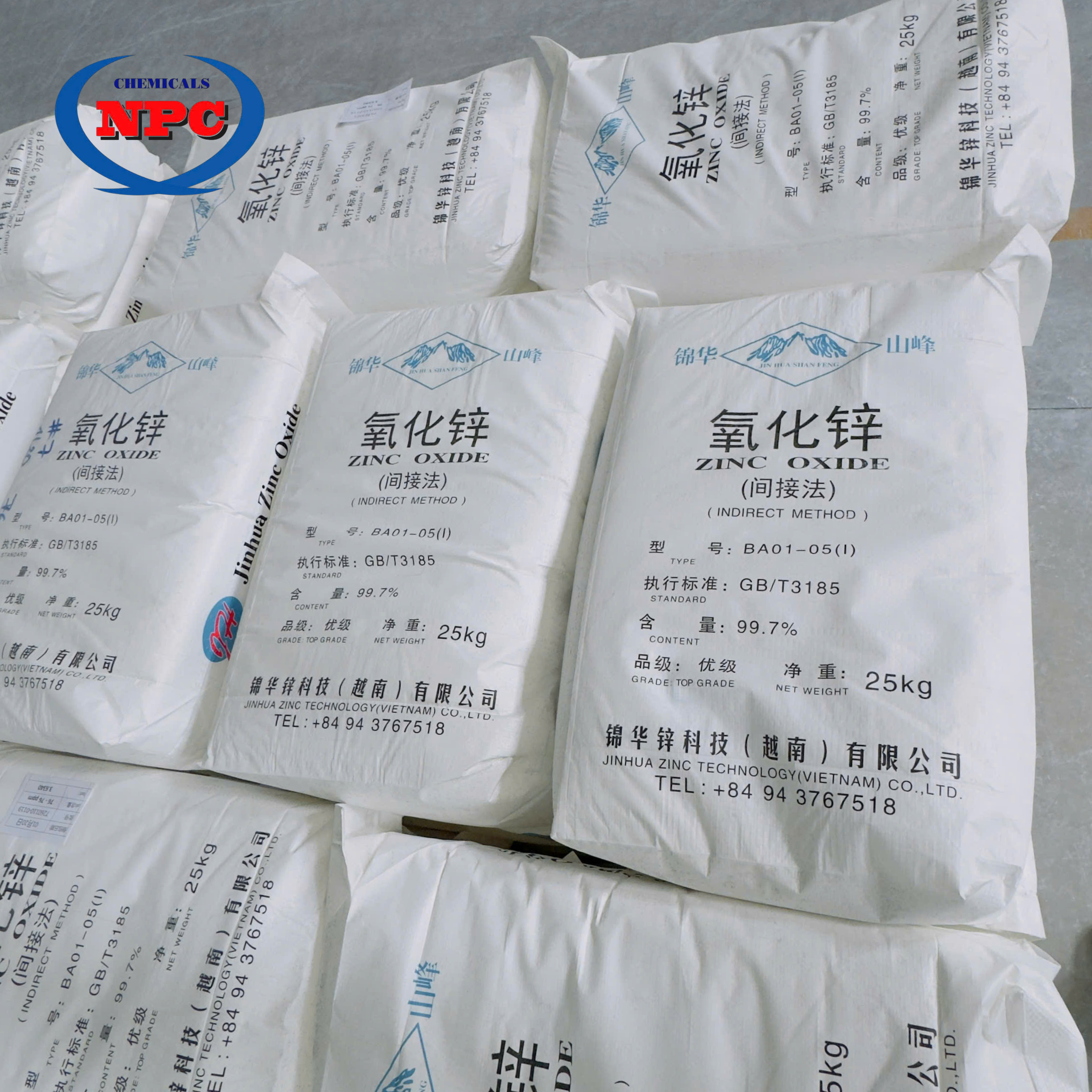 - Kẽm Oxide hãng Jinhua (Zinc Oxide 99.7%) là nguyên liệu công nghiệp quan trọng, sở hữu độ tinh khiết cao, chất lượng ổn định, đáp ứng đầy đủ tiêu chuẩn GB/T3185. Với phạm vi ứng dụng rộng trong cao su, sơn, gốm sứ, thủy tinh, điện tử, y dược và thực phẩm, sản phẩm mang lại hiệu quả kỹ thuật cao và giá trị kinh tế bền vững cho doanh nghiệp.